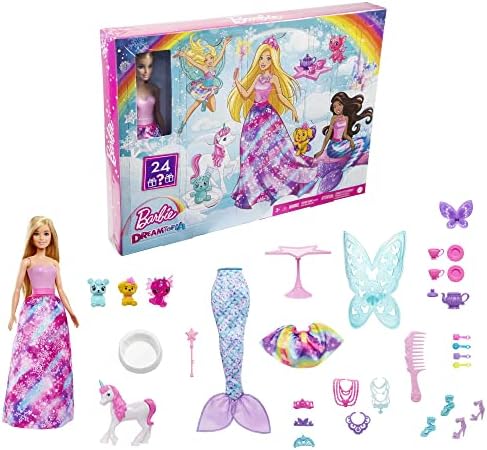 Barbie - Barbie Dreamtopia Advent Calendar Fantasy-Themed with 24 Surprises Daily Toys Include Barbie Fashion Doll Pets Clothes & Accessories Like Mermaid Tail & Wings