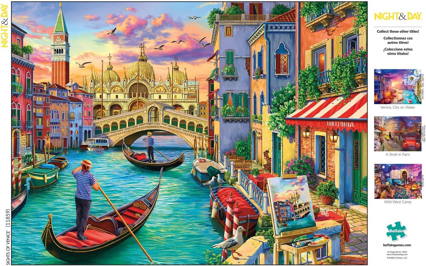 Buffalo Games Sights of Venice " 1000-Piece Jigsaw Puzzle Explore the beauty of Venice from the comfort of home with this stunning 1000-piece jigsaw puzzle! Features: Challenging & Engaging " With 1000 pieces, this puzzle is perfect for a relaxing solo project or a fun group activity for ages 14 and up. Premium Quality " Made with thick, sturdy pieces and laser-cut precision to ensure a perfect fit with Buffalo Games' signature Perfect Snap technology. Stunning Venice Imagery " Part of the Night & Day Series, this puzzle captures the iconic canals, historic buildings, and glowing city lights of Venice. Bonus Full-Color Poster " Includes a reference poster to help with assembly or to frame and display once the puzzle is completed. Eco-Friendly " Made from recycled puzzle board, combining sustainability with high quality. Perfect Gift Idea " Great for puzzle enthusiasts, travel lovers, or anyone who enjoys a creative challenge. Puzzle Size: 7.94 in. x 7.94 in. (Finished size may be larger) Take a piece-by-piece journey through Venice and enjoy the ultimate puzzle experience with Buffalo Games!