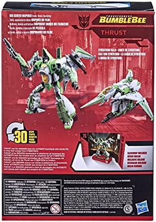 Product Description Studio Series has always allowed fans to reach past the big screen and build the ultimate Transformers collection inspired by iconic movie scenes from the Transformers movie universe. Now, the Studio Series line is expanding to include the epic moments and characters from the classic 1986 The Transformers: The Movie, bringing fans a whole new series of screen-inspired figures to collect! (Each sold separately. Subject to availability.) This Studio Series 76 Voyager Class Transformers: Bumblebee-inspired Thrust figure converts from robot to tetrajet mode in 30 steps. Remove backdrop to showcase Thrust in the Cybertron Falls scene. Key Features: STUDIO SERIES VOYAGER CLASS: Voyager Class figures are 6.5-inch collectible action figures inspired by iconic movie scenes and designed with specs and details to reflect the Transformers movie universe, now including The Transformers: The Movie!,6.5-INCH SCALE THRUST: Figure features vivid, movie-inspired deco, is highly articulated for posability, and comes with a blaster and 2 Null Ray accessories inspired by the film,BIG SCREEN INSPIRED: Figure scale reflects the characteraTMs size in the world of Transformers: Bumblebee Figure and packaging are inspired by the iconic Cybertron Falls scene,2 ICONIC MODES: Figure features classic conversion between robot and tetrajet modes in 30 steps Perfect for fans looking for a more advanced converting figure For kids and adults ages 8 and up,REMOVABLE BACKDROP: Removable backdrop displays Thrust figure in the Cybertron Falls scene Fans can use the backdrop and pose their figures in the scene with their own style This product is designed with premium quality, ensuring durability and superior performance.