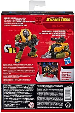 Product Description This Studio Series 80 Deluxe Class Transformers: Bumblebee-inspired Brawn figure converts from robot to Cybertronian off-road vehicle mode in 18 steps. Remove backdrop to showcase Brawn in the Cybertron Falls scene. In the Cybertron Falls scene from Transformers: Bumblebee, Brawn helps his Autobot allies hold the line against the Decepticons before being knocked by an enemy blast. Key Features: STUDIO SERIES DELUXE CLASS: Deluxe Class figures are 4.5-inch collectible action figures inspired by iconic movie scenes and designed with specs and details to reflect the Transformers movie universe, now including The Transformers: The Movie!,4.5-INCH SCALE BRAWN: Figure features vivid, movie-inspired deco, is highly articulated for posability and comes with drill and 2-handed blaster accessories inspired by the film,BIG SCREEN INSPIRED: Figure scale reflects the characteraTMs size in the world of Transformers: Bumblebee Figure and packaging are inspired by the iconic Cybertron Falls scene,2 ICONIC MODES: Figure features classic conversion between robot and Cybertronian off-road vehicle modes in 18 steps Perfect for fans looking for a more advanced converting figure For kids and adults ages 8 and up,REMOVABLE BACKDROP: Removable backdrop displays Brawn figure in the Cybertron Falls scene Fans can use the backdrop and pose their figures in the scene with their own style This product is designed with premium quality, ensuring durability and superior performance.