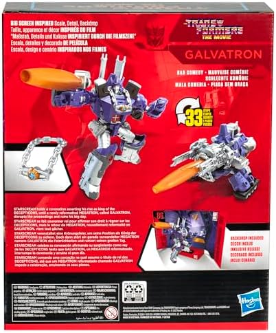 Product Description Bring the epic action of the Transformers movies from the big screen into your collection with the Transformers Studio Series Leader Class Galvatron action figure, inspired by The Transformers: The Movie! Transformers Studio Series toys are collectible action figures that feature movie-inspired details and accessories. The figure converts from robot to galactic cannon mode in 33 steps and features articulated head, arms, and legs for awesome action poses. It comes with 3 cannons that attach in both modes and a Matrix of Leadership that can hang around the figureaTMs neck. Key Features: THE TRANSFORMERS: THE MOVIE GALVATRON: This Transformers Studio Series 86-31 Galvatron action figure articulated for posability and features movie-inspired deco and details,TRANSFORMERS TOYS STUDIO SERIES LEADER CLASS: This 8.5-inch (21.6 cm) collectible action figure is inspired by iconic movie scenes and designed with specs and details to reflect the Transformers movie universe,2 ICONIC MODES: This Studio Series Transformers toy features classic conversion between from robot to galactic cannon mode in 33 steps,AWESOME ACCESSORIES: Transformers figure comes with a particle beam cannon and 2 side cannon accessories that attach in both modes Matrix of Leadership accessory can hang around the figureaTMs neck,ARTICULATED FOR PLAY AND DISPLAY: Transformers figures feature articulated heads, arms, and legs for action poses,GIFT TRANSFORMERS COLLECTIBLES: This Studio Series Galvatron action figure toy makes a great collectible figure gift for any Transformers fan,COLLECT STUDIO SERIES MOVIE FIGURES: This action figure toy makes a great collectible figure gift for any Transformers fan Look for more Transformers Studio Series toys to build a collection (each sold separately, subject to availability) This product is designed with premium quality, ensuring durability and superior performance.