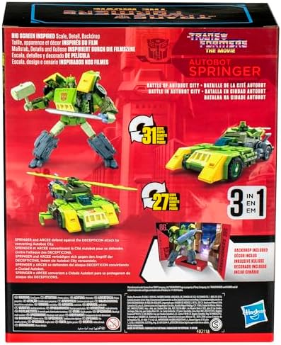 Product Description Bring the epic action of the Transformers movies from the big screen into your collection with the Transformers Studio Series Leader Class Springer action figure, inspired by The Transformers: The Movie! Transformers Studio Series toys are collectible action figures that feature movie-inspired details and accessories. Convert the Studio Series Transformers action figure for 3-in-1 play! The figure converts from robot to Cybertronian tank mode in 31 steps, then to Cybertronian helicopter mode in 27 steps. Pose the Springer toy in the included Battle of Autobot City removable backdrop scene. Key Features: THE TRANSFORMERS: THE MOVIE SPRINGER: This Transformers Studio Series 86-30 Springer action figure is highly articulated for posability and features movie-inspired deco and details,TRANSFORMERS TOYS STUDIO SERIES LEADER CLASS: This 8.5-inch (21.6 cm) collectible action figures is highly articulated for posability and designed with specs and details to reflect the Transformers movie universe,3 ICONIC MODES: This Studio Series Transformers toy is a Triple Changer, featuring 3 converting modes from robot to Cybertronian tank in 31 steps, then to Cybertronian helicopter in 27 steps,AWESOME ACCESSORIES: Transformers figure comes with an attachable blaster and sword for fun poses,ARTICULATED FOR PLAY AND DISPLAY: Transformers figures feature articulated heads, arms, and legs for action poses,REMOVABLE BACKDROP: Removable backdrop displays the Transformers Studio Series Springer figure in the Battle of Autobot City scene,COLLECT STUDIO SERIES MOVIE FIGURES: This action figure toy makes a great collectible figure gift for any Transformers fan Look for more Transformers Studio Series toys to build a collection (each sold separately, subject to availability) This product is designed with premium quality, ensuring durability and superior performance.