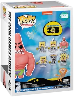 Product Description Bikini Bottoms Fast Food Coliseum has a star contender for the Fry Cook Games. Its Pop! Fry Cook Games Patrick Star, and heAs rippling with muscles. Will he face off in the games, or just fan the flames of a rivalry? Celebrate the 25th anniversary of SpongeBob SquarePants with this lovable character. Key Features: Plastic,IDEAL COLLECTIBLE SIZE - At approximately 3.75 inches (9.5 cm) tall, this vinyl mini figurine complements other collectable merchandise and fits perfectly in your display case or on your desk.,PREMIUM VINYL MATERIAL - Made from high-quality, durable vinyl, this collectible is built to last and withstand daily wear, ensuring long-lasting enjoyment for fans and collectors alike.,PERFECT GIFT FOR SPONGEBOB SQUAREPANTS FANS - Ideal for holidays, birthdays, or special occasions and as a present this exclusive figurine is a must-have addition to any Spongebob Squarepants merchandise collection,EXPAND YOUR COLLECTION - Add this unique Patrick Star vinyl display piece to your growing assortment of Funko Pop! figures, and seek out other rare and exclusive collectible items for a complete set,LEADING POP CULTURE BRAND - Trust in the expertise of Funko, the premier creator of pop culture merchandise that includes vinyl figures, action figures, plush, apparel, board games, and more. This product is designed with premium quality, ensuring durability and superior performance.
