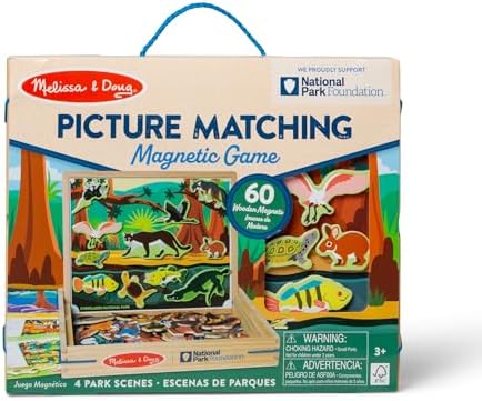 Product Description Take a magnetic matching journey through four national parks (Everglades, Arches, Acadia, Mammoth Cave)! Learn and play by matching 60 shaped wooden magnets on large double-sided scene cards to pictures shown on two double-sided identification guides. The magnetic lid slides into slots in the wooden carrying case with built-in handle; insert scene cards to create a play surface. Key Features: Introduce kids to 4 national parks (Everglades, Arches, Acadia, Mammoth Cave) with this match-and-play educational game: Slide the magnetic lid into the wooden carrying case, place a scene card on it, and match wooden magnets to pictures shown on identification guides, or create your own scenes and stories,Includes 60 wooden animal and plant magnets, 2 double-sided ID cards (English and Spanish), 2 double-sided park scene cards, wooden storage case with built-in handle and magnetic lid,Magnet backgrounds are color-coded for easy matching; this fun and educational learning game is great for sorting and counting activities, fine-motor skill development, storytelling, and imaginative play,The Melissa & Doug National Park Foundation collection is designed to inspire kids to discover the wonder of AmericaaTMs national parks; Melissa & Doug is proud to support the National Park Foundation with a million-dollar minimum donation over 3 years to help protect our parks for present and future generations,Makes a great gift for boys and girls, ages 3 to 6, for hands-on, screen-free play; product made with FSC-certified materials that support responsible forestry; applies to new inventory only (FSC C156584) This product is designed with premium quality, ensuring durability and superior performance.
