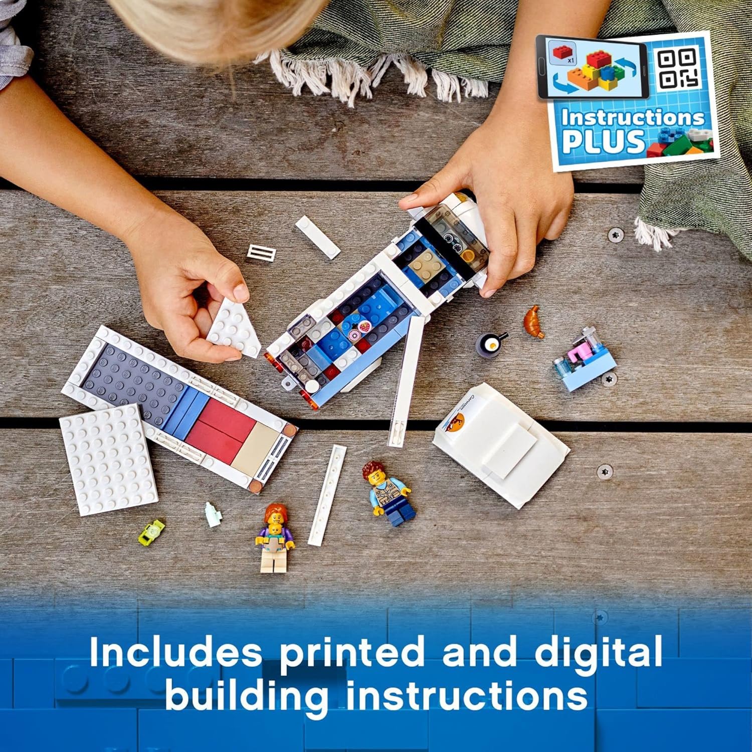 LEGO City Holiday Camper Van 60283 " Fun Family Adventure Set Inspire endless road trip adventures with the LEGO City Holiday Camper Van. Designed for kids aged 5 and up, this detailed motorhome playset features a furnished interior, an opening side panel, and a removable roof for immersive role play. Realistic Features " Includes a kitchenette, sleeping area, and outdoor furniture for camping fun. Family Minifigures " Comes with Mom, Dad, and a baby figure for imaginative storytelling. Exciting Accessories " Features a baby carrier, camping stove, pan with fried egg, croissant, smoothie maker, baby bottle, camera, and cups. Interactive Building Experience " Includes a printed guide and digital Instructions PLUS via the free LEGO Building Instructions app. This 190-piece LEGO City Great Vehicles set makes an excellent gift for birthdays or holidays, offering hours of creative and hands-on play. Build, explore, and create unforgettable camping memories with this fun-filled camper van set.