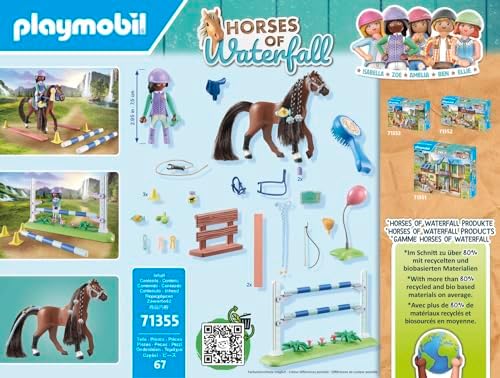 nan Key Features: Soaring in Show Jumping: Support Zoe on her journey to become the best show jumper in Waterfall With her faithful Trakehner gelding Blaze, she conquers obstacles like pole barriers in the course and strengthens her bond with him,Training for Victory: Together, Zoe and Blaze master soft poles, cones, and obstacles to prepare for exciting competitions The set includes everything they need for their intensive training, including a saddle and bridle,Toy for children ages 5+: Fits perfectly in children's hands due to age-appropriate size pieces, easy to hold thanks to its rounded edges,Everyday play: assembly instructions, high-quality and durable design, easily clean by placing pieces under running water with no harsh chemicals,Contents: 67 pieces with instructions: 1 figure, 1 animal, 65 additional accessories; materials made from plastic; LxWxH: approx 6.3 x 1.4 x 3.7 cm, weight: 127 g, 71355 This product is designed with premium quality, ensuring durability and superior performance.
