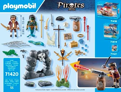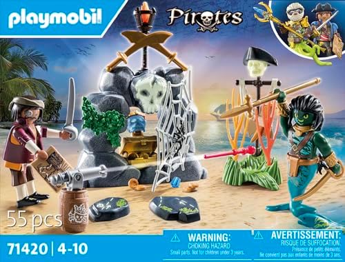 Product Description It's eight giant octopuses legs versus two pirate legs at the Battle of the Giant Octopus! Who will win? Watch as the sea monster splashes real water from its tentacles as the pirate tries to escape in his rowboat with functioning cannons. The boat floats and fits one figure inside. Combine with other PLAYMOBIL Pirate sets (#71418-71421 a sold separately) for even more fun. Set includes two figures, octopus, cannon, trident, compass, and lots of other accessories. Recommended for ages four to ten years. Warning. Choking Hazard. Small parts. Key Features: Master of the Oceans: Dark Kraken, a human octopus and leader of the Deepers, wields the magical trident with a compass Together with the monstrous octopus, he fights side by side against the approaching pirate,Real Water Battles: The giant octopus launches real water splashes from its tentacles a a challenge for the pirate Use accessories such as cannons and projectiles to withstand the sea monster,Toy for children ages 4+: Fits perfectly in children's hands due to age-appropriate size pieces, easy to hold thanks to its rounded edges,Everyday play: assembly instructions, high-quality and durable design, easily clean by placing pieces under running water with no harsh chemicals,Contents: 44 pieces with instructions: 2 figures, 1 animal, 41 additional accessories; materials made from plastic; LxWxH: approx 9.4 x 8.3 x 3.1 inches, 71419 This product is designed with premium quality, ensuring durability and superior performance.