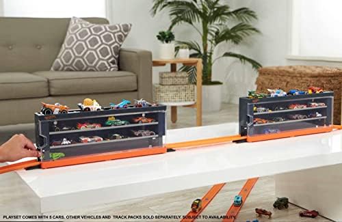 Product Description The Hot Wheels Display Case is a cool and innovative way to keep cars close to the track so the racing never has to stop! The interactive case connects to any Hot Wheels track and holds up to 12 vehicles -eight inside the clear case with parking for four more on the top. The case features an openable protective door to keep cars inside the case safe and secure during play or on display. The case also comes with eight 1:64 scale Hot Wheels vehicles that kids and collectors will love. Key Features: The Hot Wheels Display Case is more than just a case -it also connects directly to Hot Wheels tracks, providing easy access for constant racing adventures!,Connect the case directly to Hot Wheels tracks and watch cars race through the transparent windows where stored vehicles can be pulled into action at any time.,The case stores 12 1:64 scale vehicles -8 inside and 4 on top! The case features an openable protective door to keep cars inside the case safe and secure during play or on display.,The case comes with 8 Hot Wheels cars for an instant collection for play or display!,Makes an awesome gift for collectors and kids ages 4 years and older! This product is designed with premium quality, ensuring durability and superior performance.