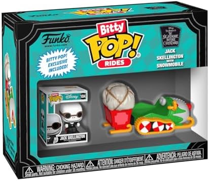 Product Description Your favorite The Nightmare Before Christmas POP! collectibles have been shrunk into Bitty POP! collectibles Expand your collection with Bitty POP! Ride Jack Skellington with Snowmobile! Bitty POP! figure is packaged in a hard acrylic display case with a detachable bottom lid. The detachable bottom lid doubles as an acrylic base, to which the Bitty POP! figure is adhered. Remove this exclusive Bitty POP! Jack Skellington from his display case so he can take a seat in the Bitty POP! Ride Snowmobile! Vinyl figures are approximately 0.9 and 1.25-inches tall. Warning: Choking Hazard. Collectibles are small. Key Features: Your favorite The Nightmare Before Christmas POP! collectibles have been shrunk into Bitty POP! collectibles!,Expand your collection with Bitty POP! Ride Jack Skellington with Snowmobile!,Remove this exclusive Bitty POP! Jack Skellington from his display case so he can take a seat in the Bitty POP! Ride Snowmobile!,Bitty POP! figure is packaged in a hard acrylic display case with a detachable bottom lid The detachable bottom lid doubles as an acrylic base, to which the Bitty POP! figure is adhered Vinyl figures are approximately 0.9 and 1.25-inches tall.,Warning: Choking Hazard Collectibles are small Not for children under the age of 3 years old. This product is designed with premium quality, ensuring durability and superior performance.