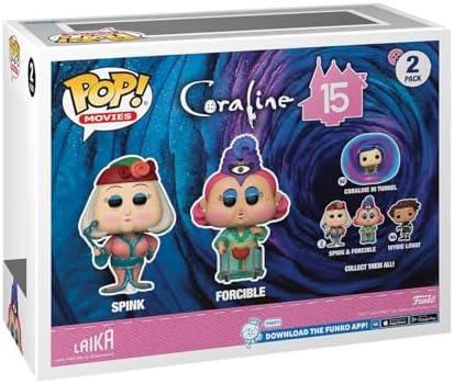 Product Description Stop by the cellar of the Pink Palace Apartments for a cup of tea and an ominous reading with Pop! Spink and Pop! Forcible! Celebrate the 15th Anniversary of Coraline by welcoming this 2-pack of tenants into your collection. Key Features: IDEAL COLLECTIBLE SIZE - At approximately 3.75 inches (9.5 cm) tall, this vinyl mini figurine complements other collectable merchandise and fits perfectly in your display case or on your desk.,PREMIUM VINYL MATERIAL - Made from high-quality, durable vinyl, this collectible is built to last and withstand daily wear, ensuring long-lasting enjoyment for fans and collectors alike.,PERFECT GIFT FOR CORALINE FANS - Ideal for holidays, birthdays, or special occasions and as a present this exclusive figurine is a must-have addition to any Coraline merchandise collection,EXPAND YOUR COLLECTION - Add this unique Miss Forcible vinyl display piece to your growing assortment of Funko Pop! figures, and seek out other rare and exclusive collectible items for a complete set,LEADING POP CULTURE BRAND - Trust in the expertise of Funko, the premier creator of pop culture merchandise that includes vinyl figures, action figures, plush, apparel, board games, and more. This product is designed with premium quality, ensuring durability and superior performance.