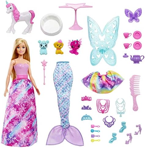 Barbie - Barbie Dreamtopia Advent Calendar Fantasy-Themed with 24 Surprises Daily Toys Include Barbie Fashion Doll Pets Clothes & Accessories Like Mermaid Tail & Wings