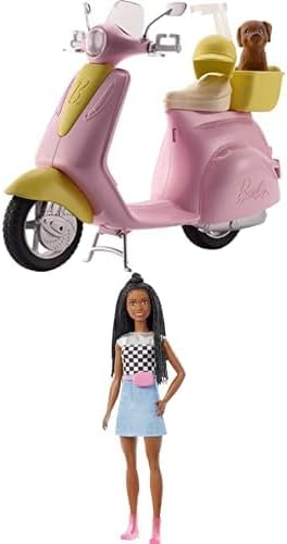 Product Description Scoot into fun with this Barbie moped. It comes with a pet friend whoAs always ready to ride! Designed in pink and yellow with silvery accents, the moped is trendy and stylish. Place Barbie doll (sold separately) on the seat where a clip holds her in place. Lift up the kickstand and push to head into imagination. Bring along the puppy in the yellow basket on back. And a yellow helmet for Barbie doll lets her ride safely in style. Key Features: This Barbie moped is ready to roll!,It comes with a pet friend to share in the fun!,The scooter is trendy designed in pink and yellow with silvery accents.,Place Barbie doll (sold separately) on the seat where a clip holds her in place -lift up the kickstand and push to head into imagination.,A yellow basket on the back is perfect for the puppy to ride along.,A yellow helmet for Barbie doll keeps her safe and is a fun accessory. This product is designed with premium quality, ensuring durability and superior performance.