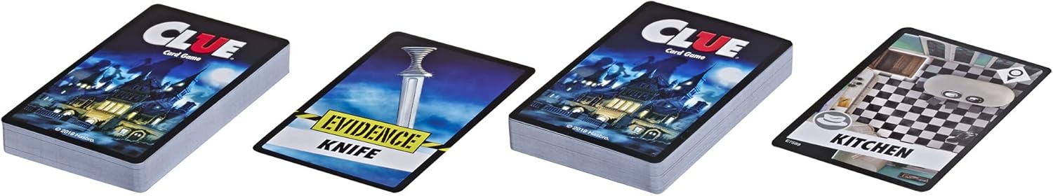 Clue Card Game " Travel-Friendly Mystery Game for 3-4 Players (2-Pack) Solve the mystery in this fast-paced, travel-friendly version of the classic Clue game! Classic Mystery Game, Card-Style: A compact twist on Clue"solve the who, what, and where to win! Portable Entertainment: Lightweight and easy to pack, perfect for road trips, vacations, and game nights. Detective Gameplay: Players use strategy and deduction to figure out the suspect, weapon, and location before their opponents. Quick & Engaging: The streamlined card format makes for faster play, ideal for younger players and quick game sessions. Great Gift Idea: Includes two decks for double the fun"perfect for holidays, birthdays, or stocking stuffers for mystery lovers ages 8 and up. Enjoy the intrigue and excitement of Clue anytime, anywhere!