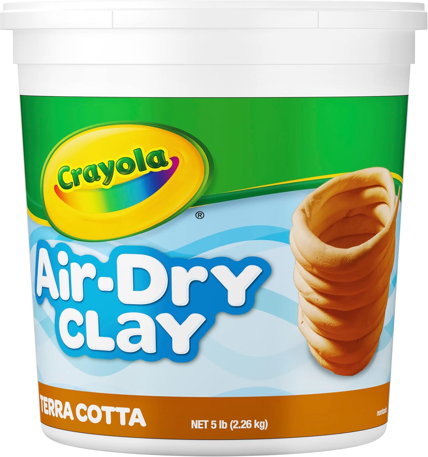Crayola Air Dry Clay for Kids (5lbs) " Terra Cotta Sculpting Clay Bulk Supply for Creative Projects: A generous 5lb bucket of terra cotta air-dry clay, perfect for multiple crafting projects and imaginative sculpting. No Baking Required: Air dries naturally, making it easy to work with and eliminating the need for baking or kiln firing. Once dry, it hardens into a durable, long-lasting material. Compatible with Paint: Crayola Project Paints & Acrylic Paints work beautifully on the clay, allowing for vibrant, detailed finishes on your creations. Easily Softened with Water: Add water to soften the clay for easier molding, shaping, and sculpting. Versatile for Multiple Uses: Ideal for sculptures, ornaments, and various creative projects, offering endless possibilities for artistic expression. Safe & Non-Toxic: Trusted Crayola quality with non-toxic, safe materials, suitable for kids and crafters of all ages. Perfect for crafting, art projects, and fun hands-on activities, this clay encourages creativity while being safe and easy to use!
