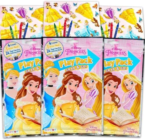 Product Description Disney Princess party favor set (3 pouches). Each resealable pouch contains 1 coloring activity book, 4 crayons and 1 sheet of stickers. Also includes 3 separately licensed GWW party favor prize stickers, Large stickers measure 3x3 inches. Key Features: Disney Princess party favor set.,Each resealable pouch contains 1 coloring activity book, 4 crayons and 1 sheet of stickers.,Also includes separately licensed GWW party favor prize stickers, Large stickers measure 3x3 inches.,Perfect as Disney Princess party supplies, party favors, class parties, Travel kits, go packs, rewards, stocking stuffers or just for fun!,Sure to be a hit with any Disney Princess fan! This product is designed with premium quality, ensuring durability and superior performance.