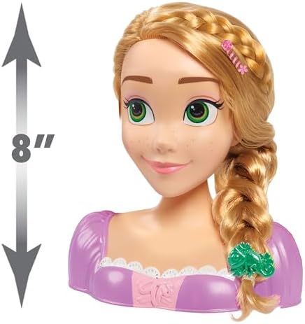 Product Description Get ready to let creativity shine with the Disney Princess Rapunzel Styling Head. Perfect for hours of pretend play, this 8-inch styling head comes with a fabulous tiara and 16 additional accessories to add glamour to Rapunzels beautiful, blonde wavy hair. Comb hair into wonderful up-dos and use the dazzling flower clip to make a bold statement. Use hair ties to create stylish looks for day. Add a pop of color with pink and yellow hair spirals. Customize 4 barrettes with 2 charms. Key Features: Includes: 1 styling head, 1 tiara, 1 comb, 4 barrettes, 2 charms, 3 hair spirals, 1 pair of earrings, 1 flower clip, and 3 elastic hair bands.,Style A Disness Princess: The Disney Princess Rapunzel Styling Head lets little hairdressers comb, twist, and curl Rapunzels hair into beautiful new looks.,Inspires Imaginative Play: Kids will love using their creativity and imagination to create stunning up-dos, fancy braids, ponytails, and wavy curls Preschoolers will love to pretend play at being hair stylists.,Wear And Share: Mix and match sparkly hair accessories with the Disney Princess Rapunzel Styling Head Theres so much glamour to share, including a shimmery lavender tiara!,More Princesses For More Fun: Collect all the Disney Princess Styling Heads and have friends over for a salon-themed party! Ariel, Moana, Rapunzel, and Tiana each sold separately.,This Disney Princess toy makes a wonderful gift for kids ages 3 years and up. This product is designed with premium quality, ensuring durability and superior performance.