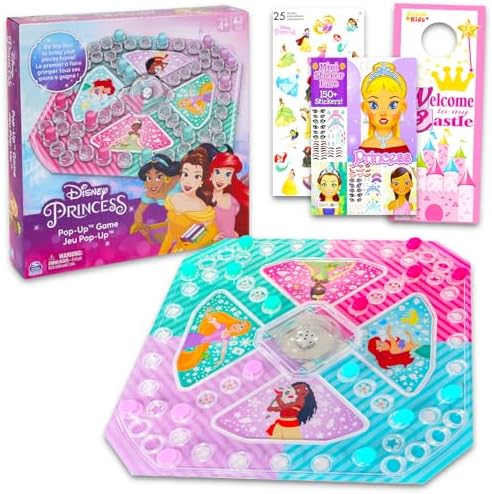 Product Description Disney Princess Pop Up Game - Bundle with Disney Princess Board Game with Pop Up Dice, Create-a-Face Stickers, More | Disney Princess Games for Girls. This Disney Princess pop up game includes the game board with die and moveable pegs. Features your favorite Disney Princesses Ariel, Moana, Rapunzel, and Tiana. Perfect for kids, this Disney Princess game can be used as a party favor or included in any family's Disney board game collection. Key Features: Disney Princess Pop Up Game - Bundle with Disney Princess Board Game with Pop Up Dice, Create-a-Face Stickers, More | Disney Princess Games for Girls.,This Disney Princess pop up game includes the game board with die and moveable pegs Features your favorite Disney Princesses Ariel, Moana, Rapunzel, and Tiana.,Perfect for kids, this Disney Princess game can be used as a party favor or included in any family's Disney board game collection.,Play the Disney Princess pop up board game with your friends and family, or take it to birthday parties and other events for more Princess fun!,Officially licensed Disney product This Disney Princess board game also includes a princess create a face sticker book, Disney Princess stickers, and a Beach Kids princess castle door hanger. This product is designed with premium quality, ensuring durability and superior performance.