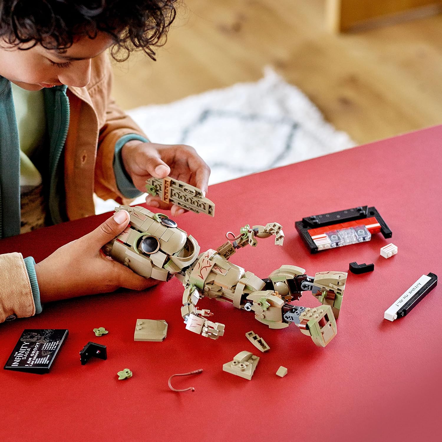 LEGO Marvel I Am Groot Set - Baby Groot Action Figure for Play & Display, Ages 10+ Posable Baby Groot: Build and position your highly detailed, jointed Baby Groot figure from Guardians of the Galaxy Vol. 2. Dance & Play: Includes a pretend cassette to recreate the famous Baby Groot dance scene, letting kids relive the fun moments. Interactive Building: Features printed instructions and a digital app for immersive building with zoom and rotate features. Perfect Gift: Ideal for Marvel fans, this set makes a great gift for kids aged 10+ who love Avengers and buildable toys. Fun & Educational: Encourages creativity and play, offering endless build-and-play possibilities. This 476-piece set stands over 10.5 inches tall, perfect for display or play.