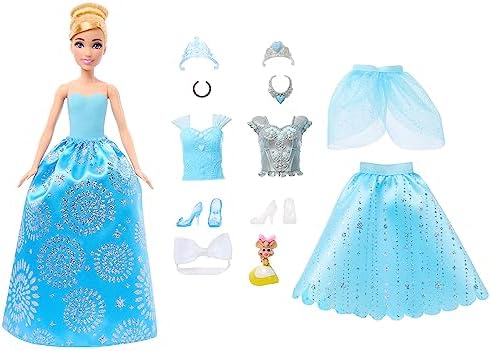 Product Description Fashion meets unboxing fun with Royal Fashion Reveal Cinderella! Kids will love unboxing the closet-inspired package to reveal a Cinderella fashion doll, a special character friend and 12 beautiful fashions and accessories that can be mixed and matched to create 125+ unique looks. Doll cannot stand alone. Key Features: Inspired by the animated character from the classic Disney movie, Royal Fashion Reveal Cinderella doll and fashions set is a fun unboxing experience that fans will love!,Kids can unbox the closet-inspired package to reveal their doll's 12 fashions and accessories in Cinderella's iconic colors, including 2 fabric skirts, 2 tops, 2 pairs of shoes and more.,Fashions and accessories can be combined to create 125+ unique looks that sparkle and shine!,Cinderella fashion doll is poseable and has brushable hair that kids can style Set also includes a surprise character friend figure for even more storytelling play.,Makes a perfect gift for kids to play out their favorite movie moments or make up their own stories!,Fans can collect all the Disney Princess fashion dolls and accessories for the ultimate adventure! Each sold separately, subject to availability. This product is designed with premium quality, ensuring durability and superior performance.