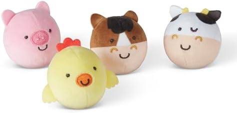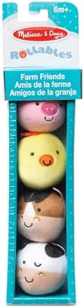 Product Description Get playtime and developmental skills rolling with Farm Friends Rollablesaadorably round characters that are firm enough to roll but soft enough to squeeze! Inspire imaginative barnyard adventures through kinetic play with four farm animal Rollables that store conveniently in the package: the perky pig, cheery chicken, friendly horse, and cute cow with chime. Compatible with other Rollables play sets. Rollables are an engaging way to encourage development of important sensory and fine motor skills. Melissa & Doug infant and toddler toys inspire aa-ha!a moments of discovery. Key Features: Inspire imaginative barnyard adventures through kinetic play with 4 adorably round farm animal Rollables,Includes a cute cow with chime, cheery chicken, perky pig, and friendly horse; Rollables store in package; compatible with other Rollables play sets,Rollables are easy for infants and toddlers to grasp, firm enough to roll, and soft enough to squeeze; introduce cause and effect and encourage sensory and fine motor skills,Melissa & Doug infant and toddler toys inspire aa-ha!a moments of discovery Adorable, diverse characters and a variety of fun shapes and textures encourage exploratory, skill-building play,Makes a great gift for infants and toddlers, ages 6 months to 2 years, for hands-on, screen-free play and developmental skill-building This product is designed with premium quality, ensuring durability and superior performance.