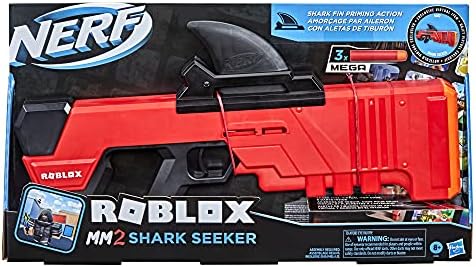 Product Description This Nerf Roblox MM2: Shark Seeker blaster takes its inspiration from Roblox game MM2. It includes a special code that allows you to redeem a virtual item on Roblox!* The blaster features an awesome shark design including a fin that you move to prime the blaster. It comes with 3 Nerf Mega foam darts. To start blasting, load 3 darts into the front of the blaster, move the top fin backward and forward, and press the trigger to fire 1 dart. Key Features: NERF ROBLOX MM2: SHARK SEEKER DART BLASTER: This dart-firing blaster takes its inspiration from the Roblox game MM2,EXCLUSIVE VIRTUAL ITEM CODE: This Nerf Roblox blaster includes a code that allows you to redeem an exclusive virtual item on Roblox*,SHARK FIN PRIMING: The blaster features a shark fin that you move to prime the blaster for firing! Pull the fin back and push it forward to prime, then press the trigger to fire a dart,INCLUDES 3 NERF MEG DARTS: Includes 3 big Official Nerf Mega darts that are made of foam -- great for indoor and outdoor play,SUSTAINABLE PACKAGING: Ships in simple, recyclable packaging thataTMs easy to open and frustration free This product is designed with premium quality, ensuring durability and superior performance.