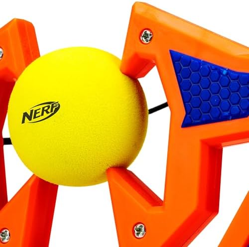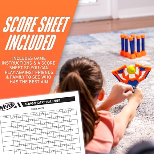 Product Description Ready, aim, fire with NERF's Slingshot Challenge! This slingshot target game is fun for kids of all ages. Set up the pins and use the slingshot and included NERF shooting balls to knock down as many as you can! The slingshot will only work with the NERF foam balls included in the set, and the balls are kids safe for child-friendly play. Challenge friends and family to see who can hit their target. You can even keep score on the included score sheet to see who has the best aim. Key Features: FIRE AWAY: The NERF Slingshot Challenge game set is the perfect toy for family fun! Simply set up the pins and use NERF foam ball slingshot to knock them down!,KID SAFE: This innovative slingshot design ensures that only the included soft foam NERF balls can be launched so kids can play safely,INDOOR + OUTDOOR GAME: The soft foam NERF balls ensure that this game can be played safely both indoors and outdoors without any breaks or damage,TEST YOUR ACCURACY: This game set comes with game instructions and a score sheet included so you can play against friends and family to see who has the best aim,INCLUDES: The NERF Slingshot Challenge game set comes with (1) slingshot, (3) NERF Foam balls, and (6) target pins so you have everything you need to play! This product is designed with premium quality, ensuring durability and superior performance.