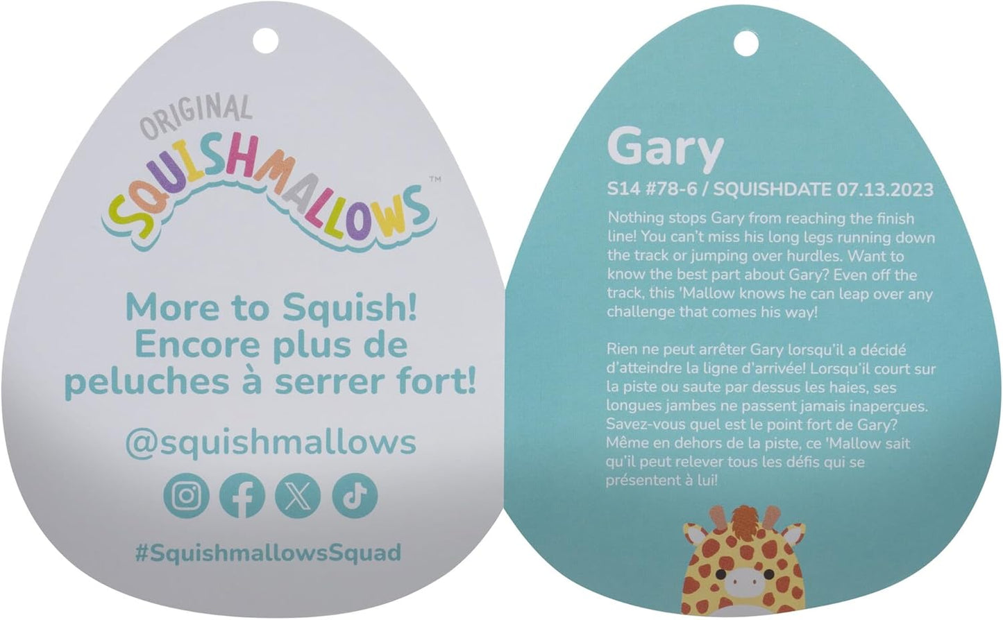 Squishmallows 14" Gary Giraffe " Official Jazwares Plush with Brown Horns Meet Gary the Giraffe, the ultra-soft and huggable 14-inch Squishmallow that's perfect for cuddles and collection! Features: Official Squishmallows Plush " Look for the authentic seal and join the Squishmallows Squad. Super Soft & Cuddly " Made with high-quality "Mallow materials for the ultimate snuggle experience. Adventurous Personality " Nothing stops Gary from reaching the finish line. Perfect Gift for All Ages " Comes in a variety of sizes, colors, and personalities to match every fan. Collect Them All " Explore FuzzAMallows, HugMees, Mystery Squad, and Stackables (each sold separately). A must-have for Squishmallows lovers looking for a soft, lovable companion!
