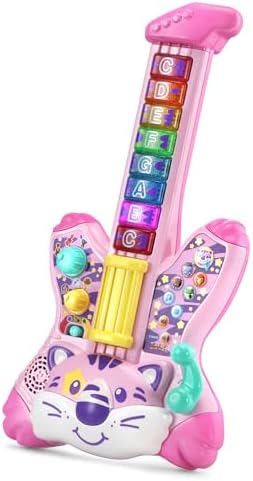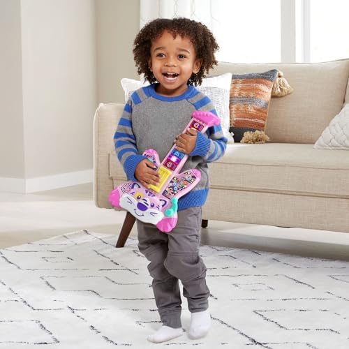 Product Description Rock and roar with the Zoo Jamz Tiger Rock Guitara! Get to know Tiger, Elephant, Parrot, Bear and Frog by pressing the animal buttons to hear sounds and silly songs about each one. Little guitarists can strum their own tune and build motor skills by pressing the eight light-up buttons or moving the string slider to play melodies or chords. Play along to rock, blues and country genres and switch between acoustic, electric and distorted electric guitar sounds by turning the guitar and music style knobs. Key Features: Press the animal buttons to hear sounds and silly songs about Tiger, Elephant, Parrot, Bear and Frog,Build motor skills by pressing the eight light-up buttons and moving the slider to strum the strings,Play along with the melodies or create original songs; pull the whammy bar to add sound effects and roars,Turn the guitar and music style knobs to choose acoustic, electric or distorted electric guitar sounds and play along to rock, blues and country melodies,Intended for ages 1.5-4 years; requires 2 A batteries; batteries included for demo purposes only; new batteries recommended for regular use This product is designed with premium quality, ensuring durability and superior performance.